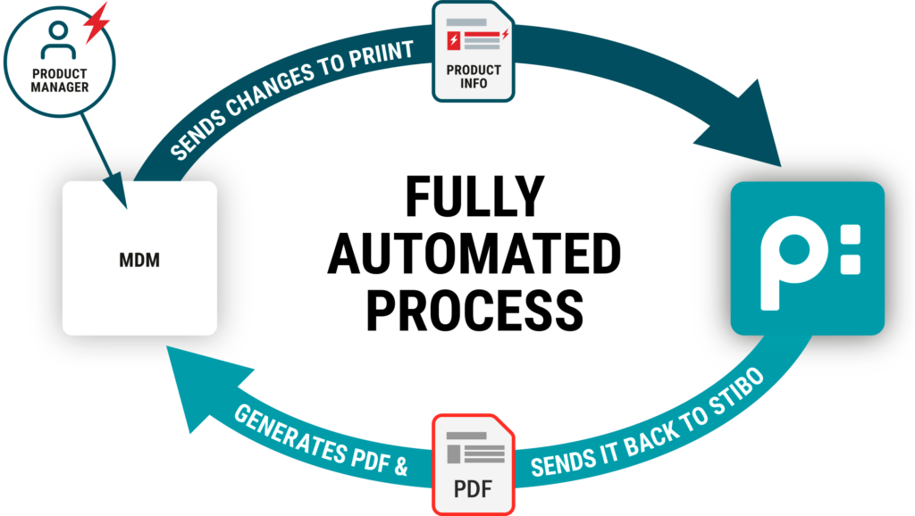 Dafür wurde gekonnt die Funktionalität des Stibo Systems STEP erweitert. Die Produktdaten werden über eine Standard-Webservice-Verbindung zwischen dem STEP-System und dem cloudbasierten priint:suite-Service an SDZeCOM gesendet.