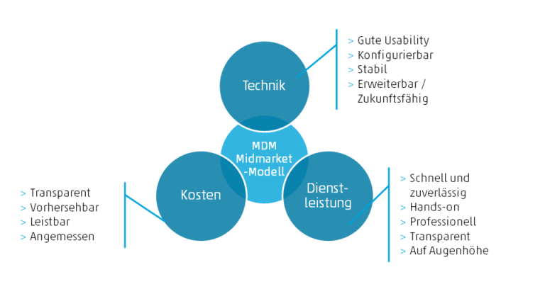 Die Übersicht zeigt die Vorteile des MDM Midmarket-Modells:
