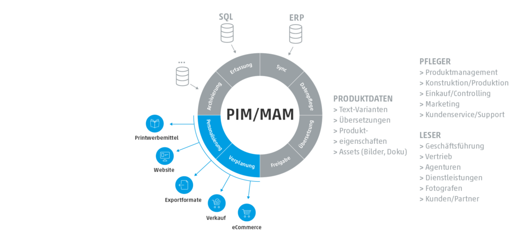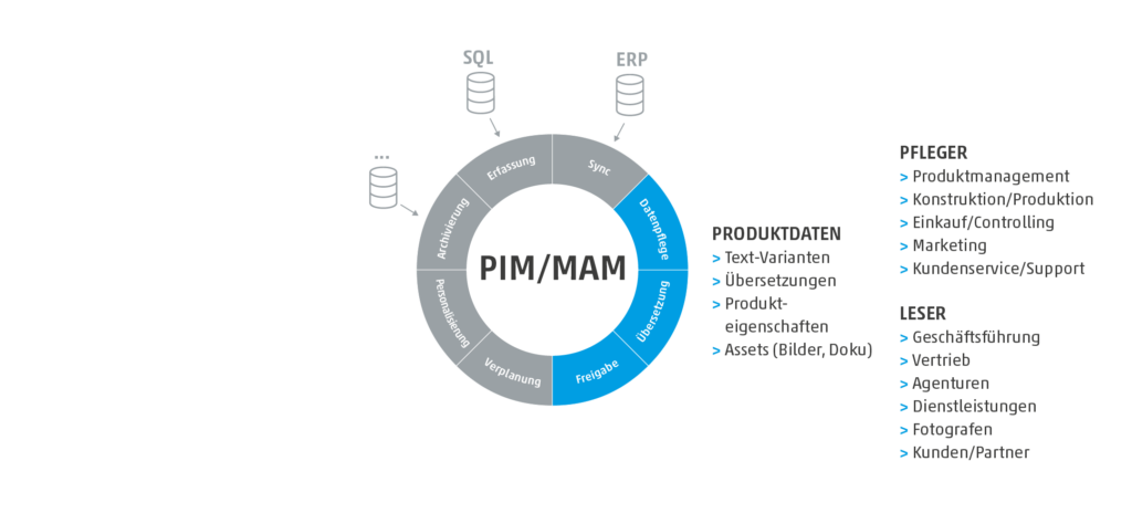 Der Lebenszyklus eines Produktes besteht aus den unterschiedlichsten Daten, die abteilungsübergreifend vom PIM verwaltet werden: