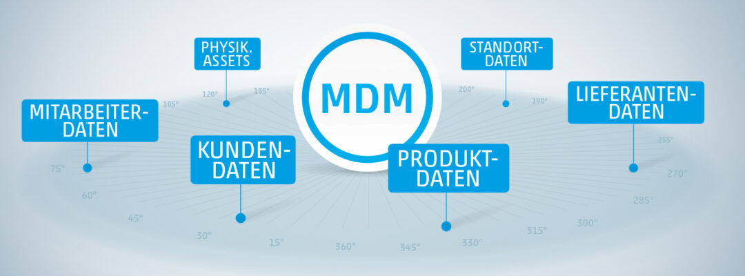Bei Master Data Management werden alle businessrelevanten Stammdaten aufgenommen, bereinigt, angereichert, in Beziehung gesetzt und zentral in einem System bereitgestellt. Zu den businessrelevanten Stammdaten zählen Kundendaten, Produktdaten, Lieferantendaten, Standortdaten, Physikalische Assets und Mitarbeiterdaten.